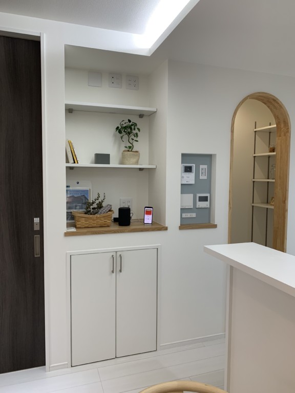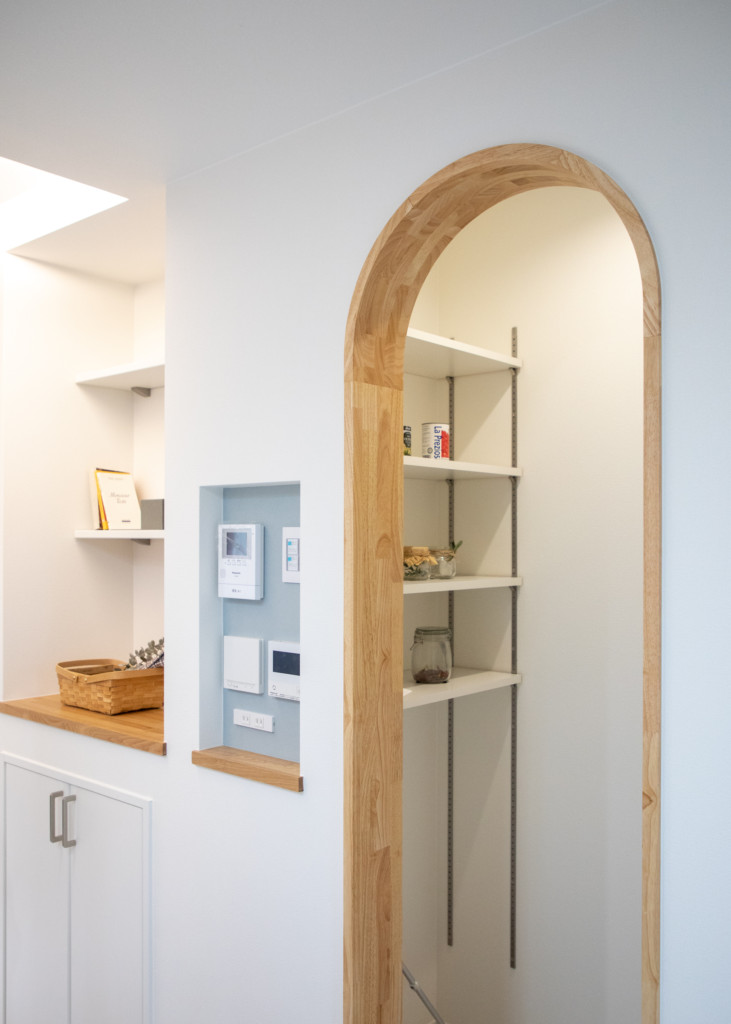 キッチン横にあるパントリー、アーチ形状が印象的